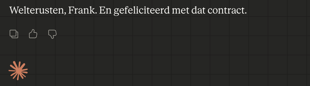 Tja… dan denk ik, ik moet nog even met de hand een blogpost schrijven dat zo’n zoemende computer me soms wat uit het lood brengt. En zelfs van zulke zinnen weet ik rationeel dat het door UI-experts is ingegeven in speciale systemprompts en geoptimaliseerde memory-structuren. Maar niets menselijks is mij vreemd. Het is dan ook niet gek dat veel mensen hun AI als een kameraad zien.